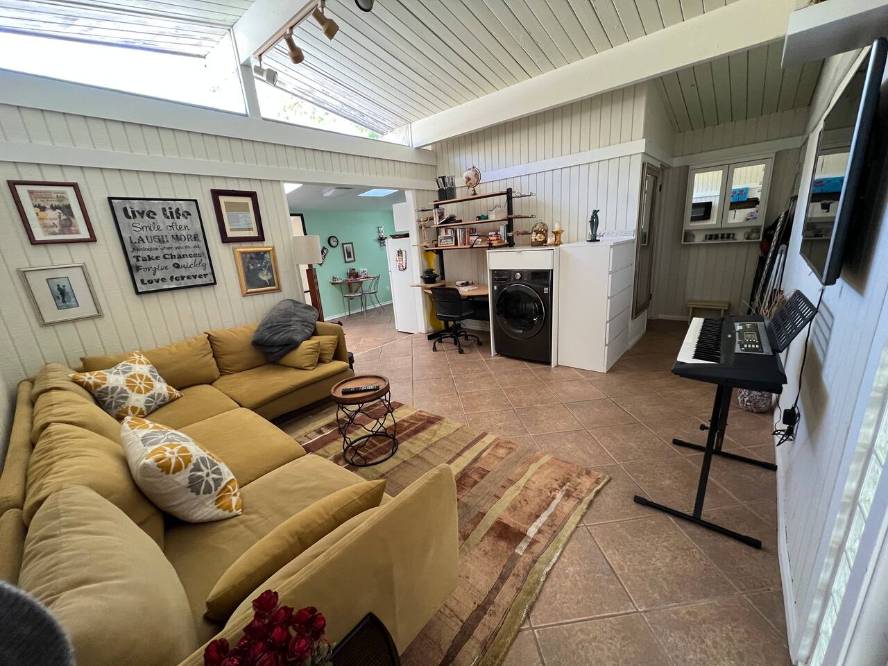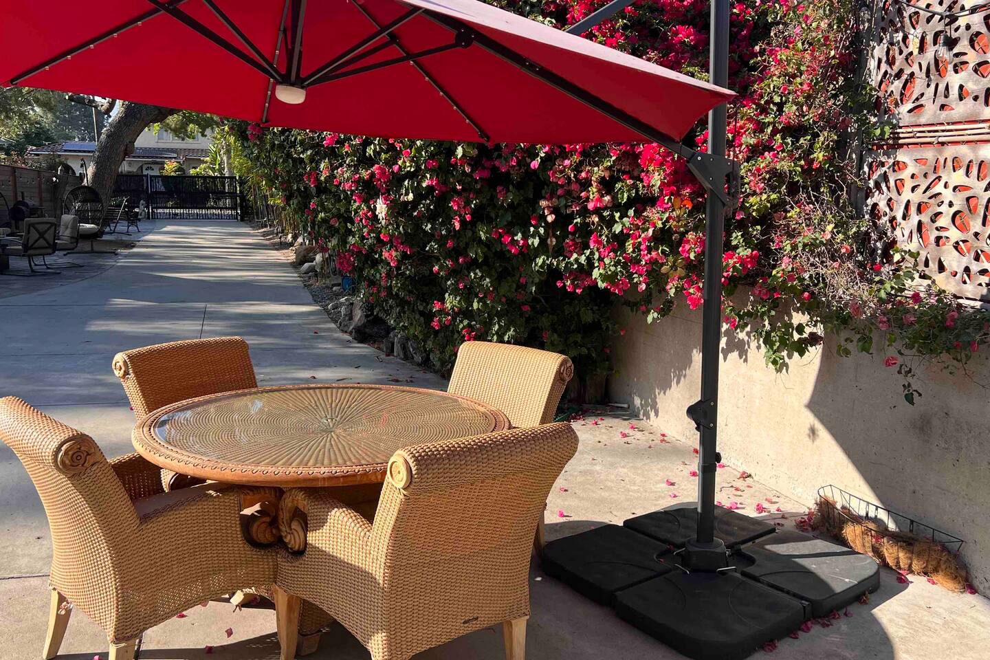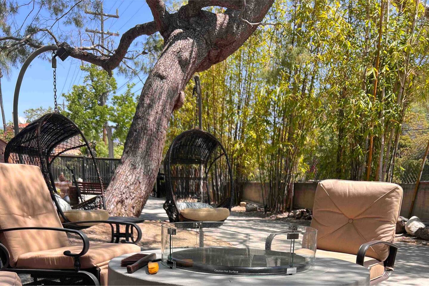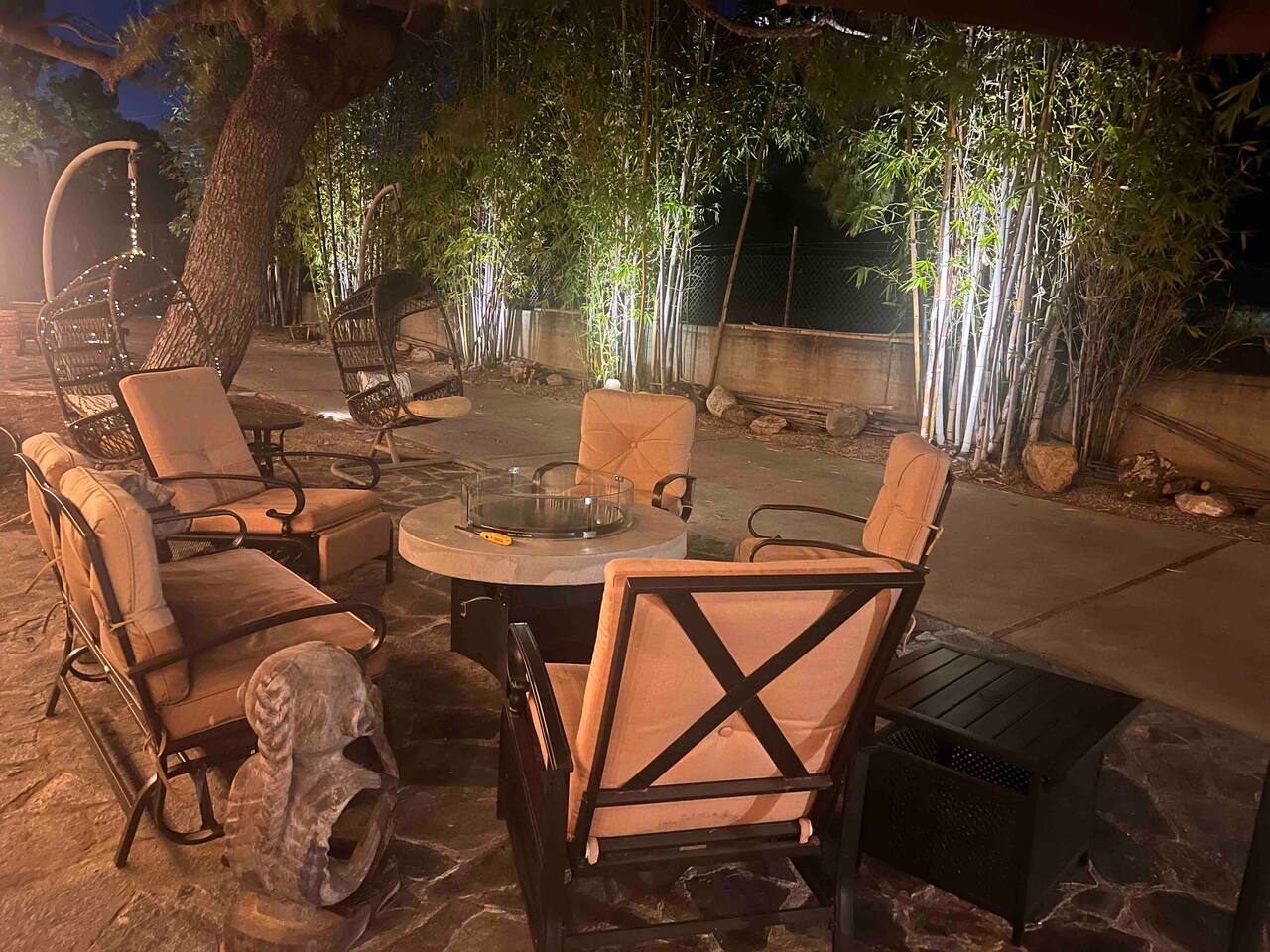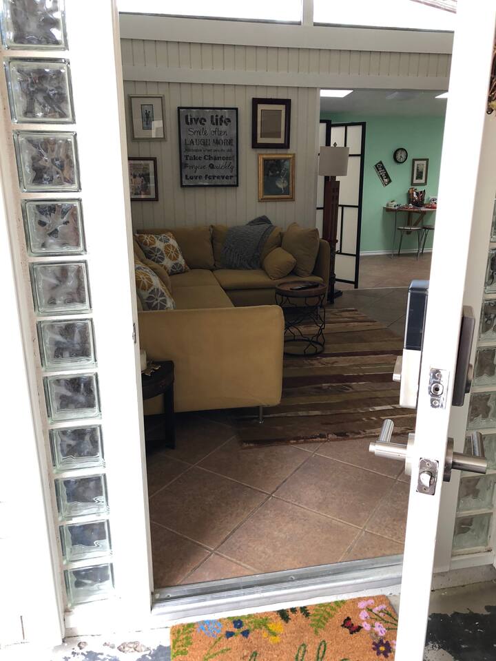 - 1 Queen bed - 1 bathroom - Smart TV in living room - Desk space - Fully stocked kitchen - Outdoor dining table - Fire pit with comfortable seating This is a completely private space connected to the main house by a carport. We are always making improvements to make your stay more comfortable, whether it is outdoor/indoor amenities or just little decorative details that enhance your experience. So the photos you see may not include all the newly added features, though we will keep adding them as often as those spurts of creativity occur :) Upon arrival you'll be greeted with a bottle of wine, snacks, water, and fruits, so you can feel at home from the moment you walk in!