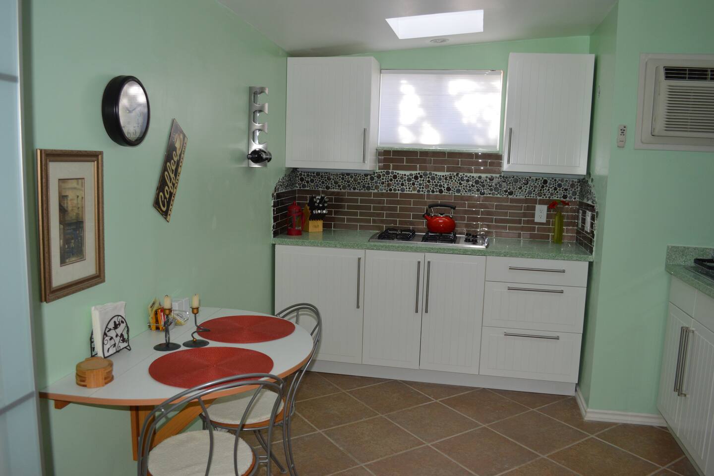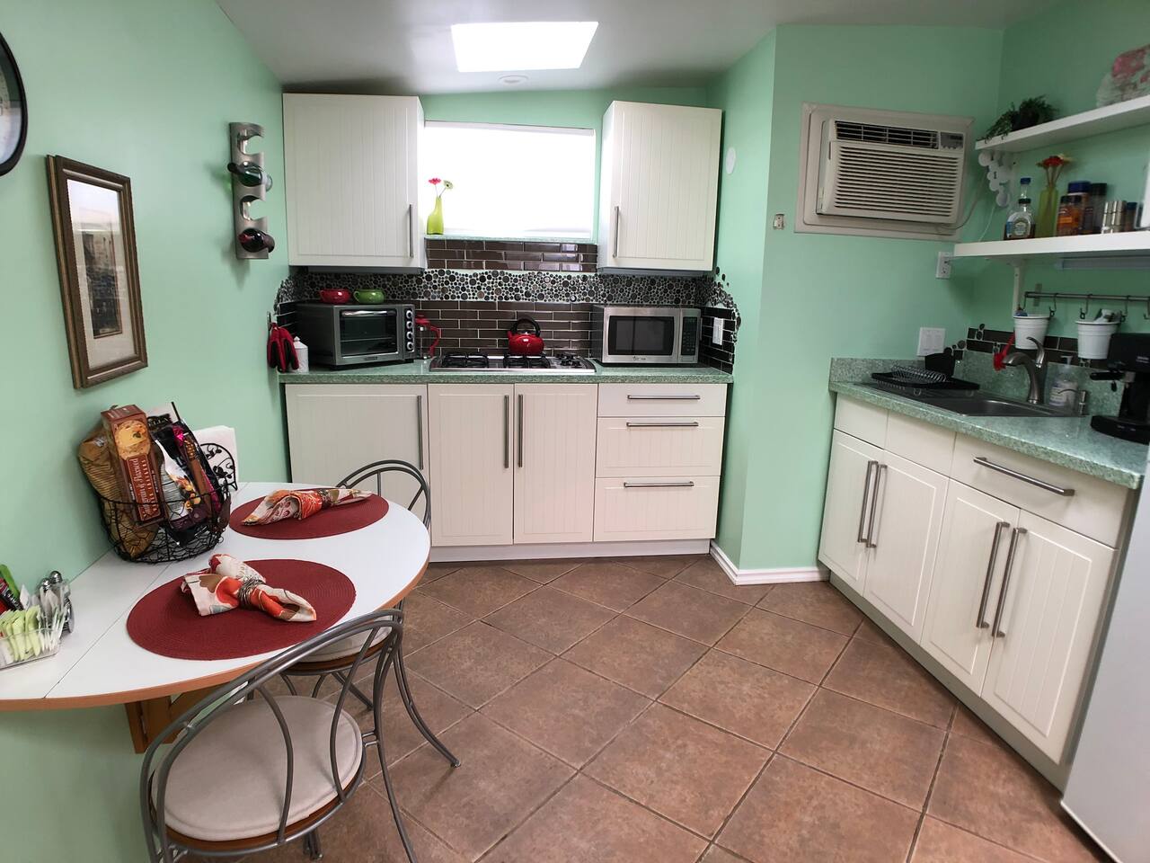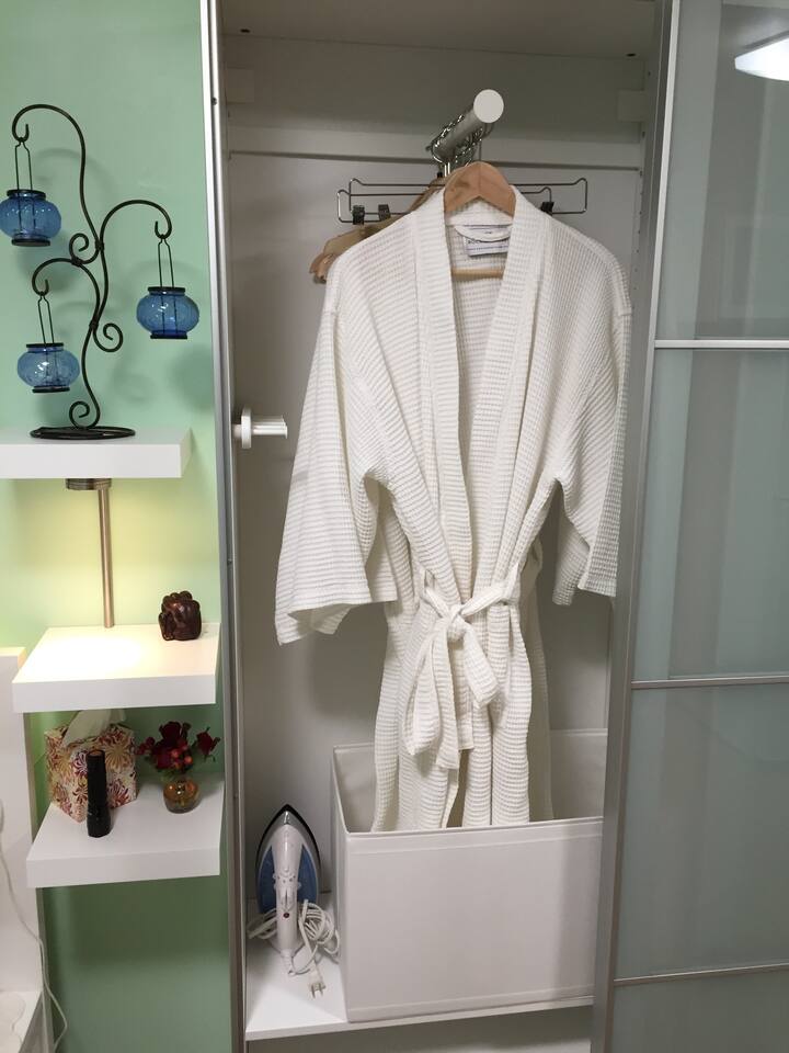 There is a cozy sitting area by the studio with papasan chairs, as well as sitting area with two swing chairs on under the pine tree and an outdoor dining table near the main house entrance that you can take advantage of during the day. The pool area right in front of the main house is our private area and is not shared with guests. Just because it won’t give our guests and the family the privacy we’d like to keep. There will be two comfy robes waiting for you inside to give you a spa-like relaxing feel. The guest house can be rented for a minimum of 2 nights and up to a maximum of one month. There are discounts for stays of a week or more. For longer stays additional cleaning can be arranged at two week intervals. The kitchen is equipped with the following: - Stove top - Counter-top toaster oven (baking, toasting, broiling) - Microwave - Hand blender - Counter-top blender - Coffee maker - Refrigerator/freezer - Sink - Pots, pans, tea pot, French press, dishes, cups, glasses, silverware, etc. - Cooking essentials: seasonings, olive oil, vinegar, salt/pepper, sugar, honey, teabags, loose tea, coffee, Brita water container, etc. [License # CHS2212080]